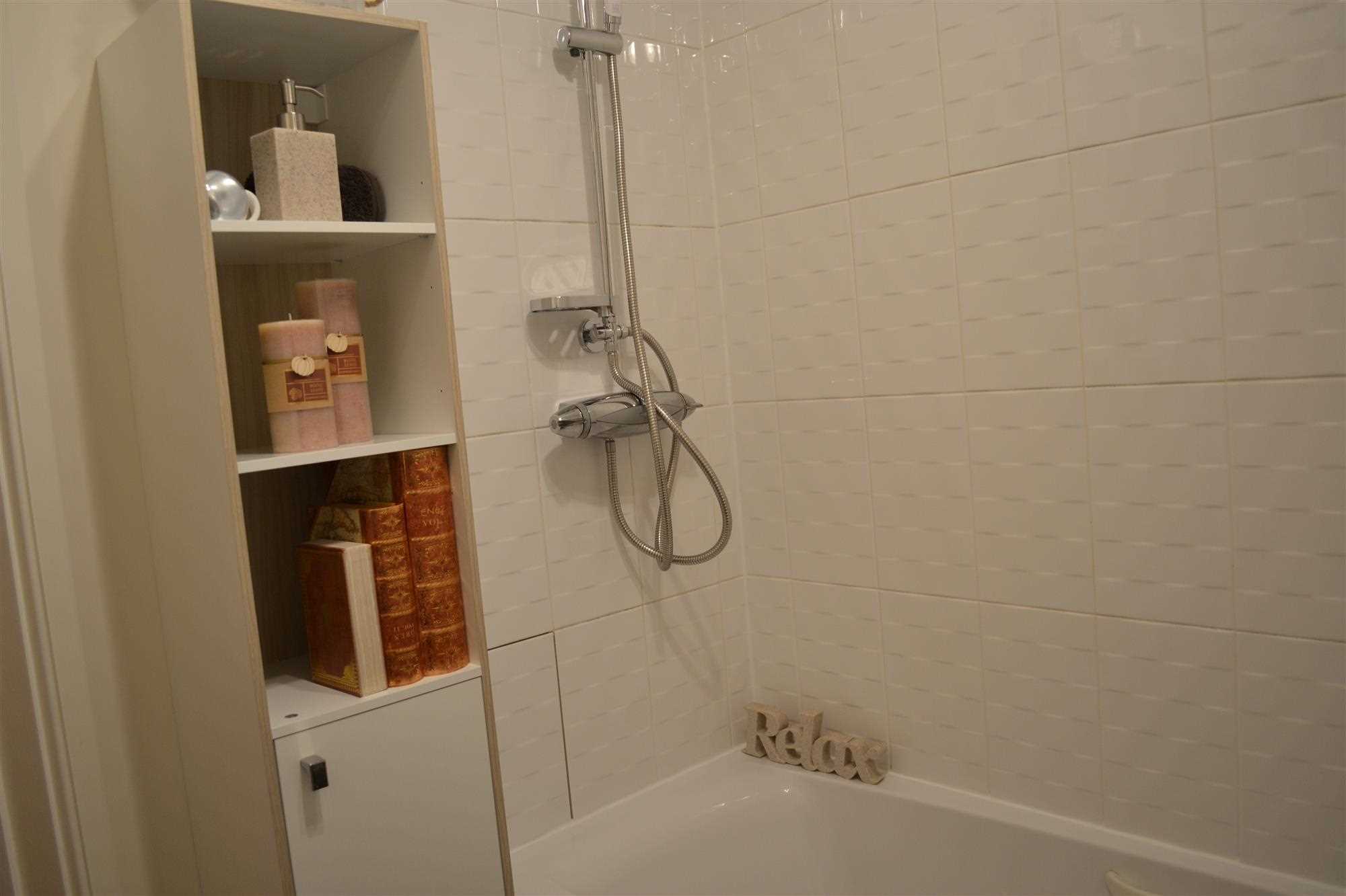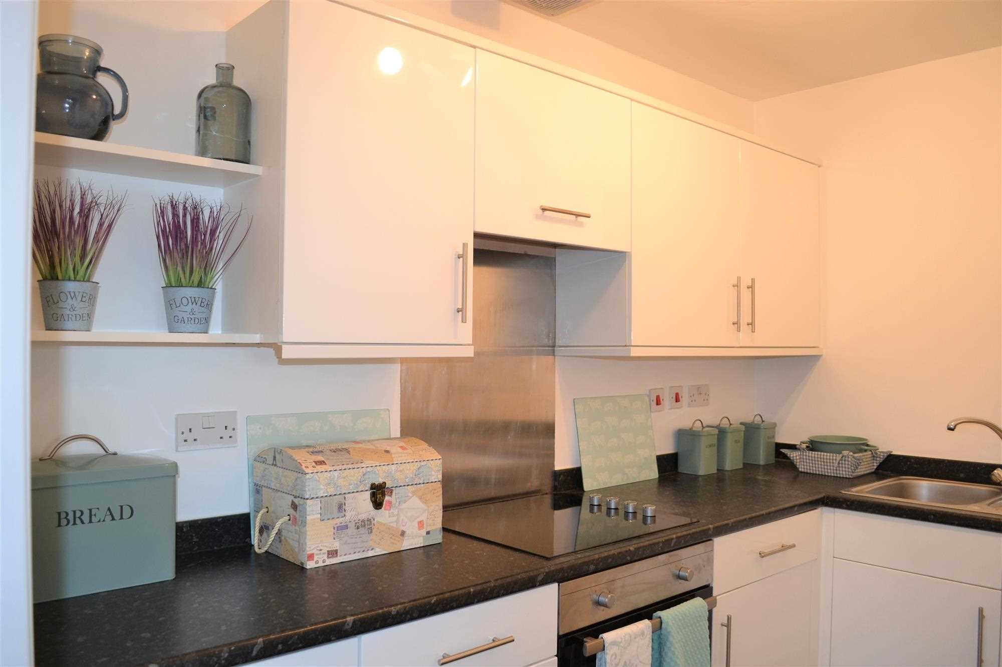 Linoleum flooring. Integrated Fridge and freezer, plumbed for washing machine. The oven and hob are brand new and have been recently fitted. White gloss kitchen with a mixture of wall and base units. Overhead extractor fan, sink and drain edge board. Metal hob splash back.