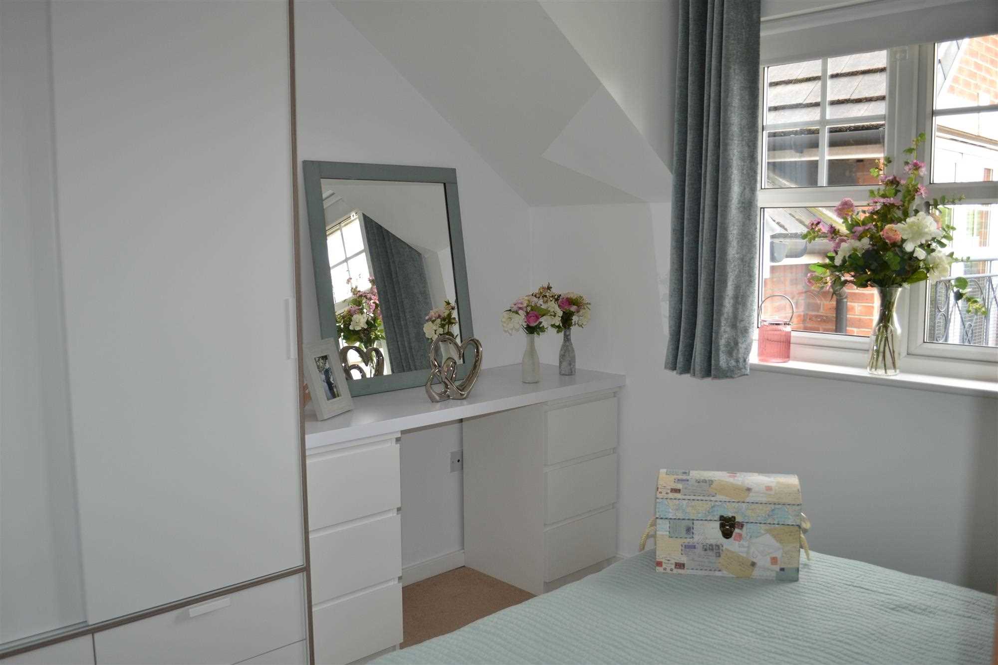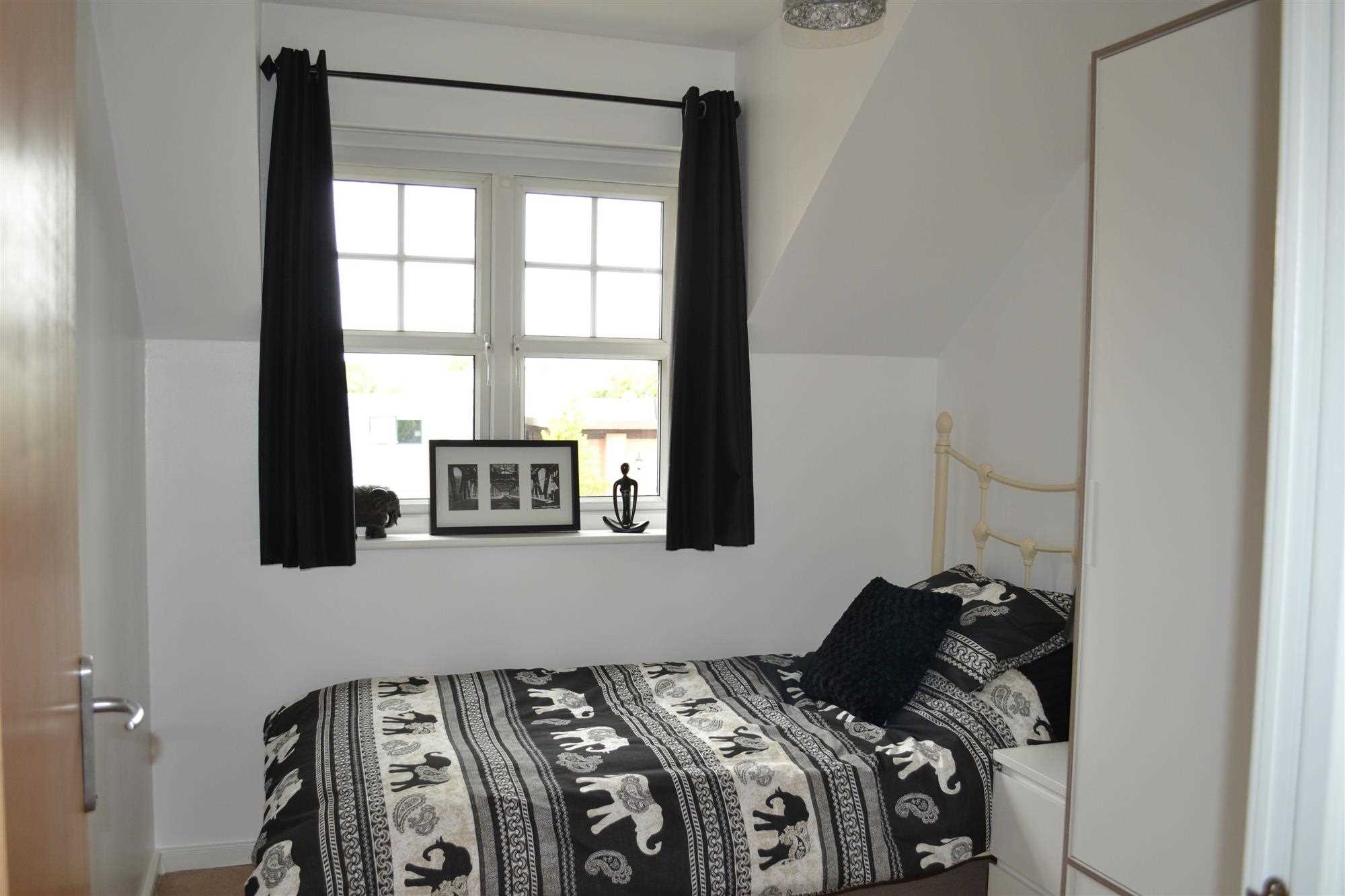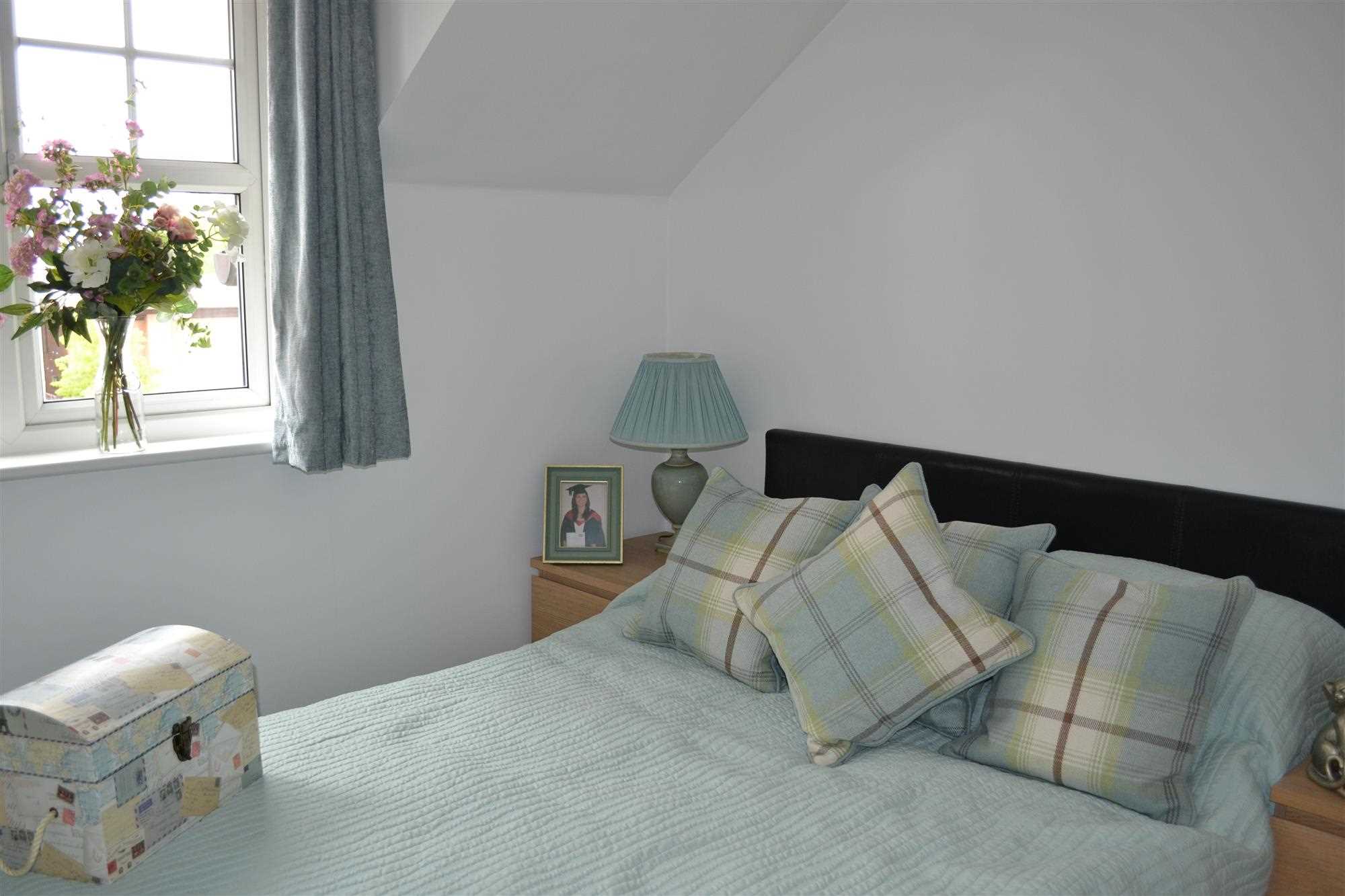 Cream carpets, electric heater, double glazed window. Painted white throughout with plenty of room for double wardrobes and side chest draws. This room is light and spacious.