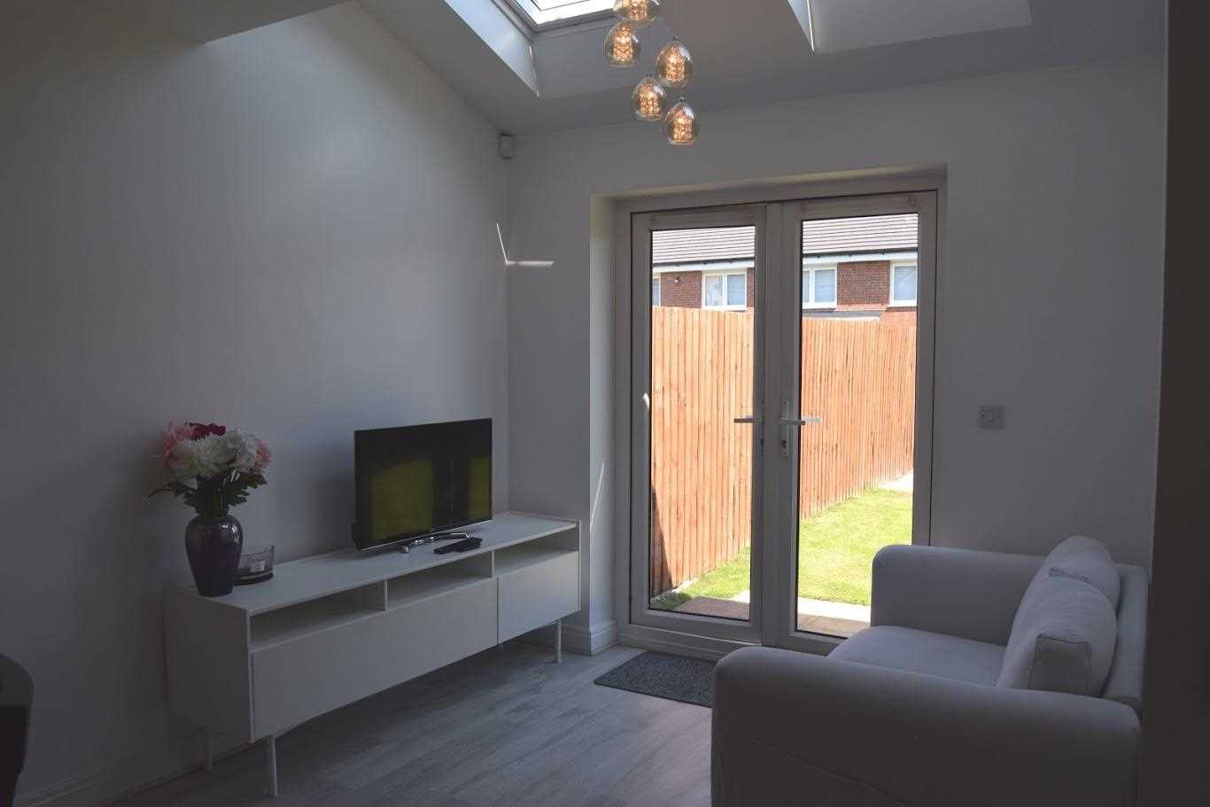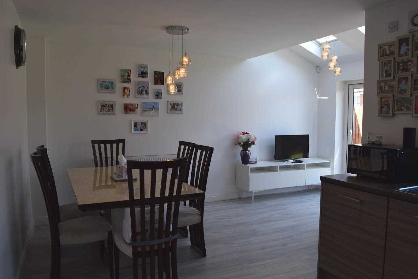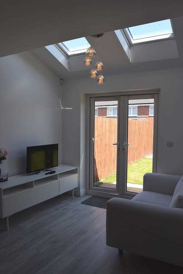 WOWEE !!! A beautifully presented large kitchen with a mix of base and wall units. The kitchen offers integrated appliances which include a dishwasher, washing machine, oven, fridge freezer and four burner ring gas hob. The boiler in tidily stored away in a wall unit. The kitchen is brown pattern design with a laminate wood look worktop which has been used as an up stand around the kitchen also. There is a silver extractor fan with silver stainless steel splash back. UPVC Double glazed window allows an abundance of light through the kitchen and into hall area. This window looks out to the garden area. There is a silver sink with drainer and mixer hot and cold tap. White walls with laminate flooring which continues through kitchen, dining and living space. The kitchen it lit with spotlights. The dining space offers so much space for a large table and chairs. This has rear views out through french doors to the garden area. The property was built with a small extension which allows additional space for a small sitting area within this room. The open plan feel is on trend with the modern living of many people. The house really allows you to cook, dine and socialise within one part of the house, whilst keep the lounge area free. The room is flooded with light which comes in through the two skylights positioned within the snug area and french doors. The room is warmed with a double radiator.