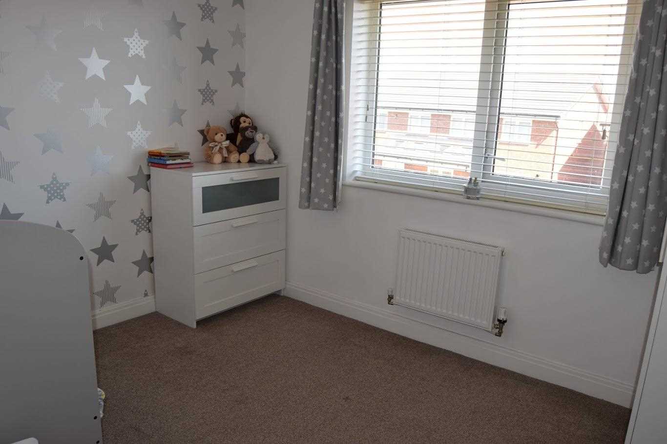 A good sized third bedroom which could hold a double bed. Rear elevation of the property. Upvc double glazed window. Oatmeal carpet. Bayonet light fitting and double radiator. There is not a box room in site. Spacious third bedroom.