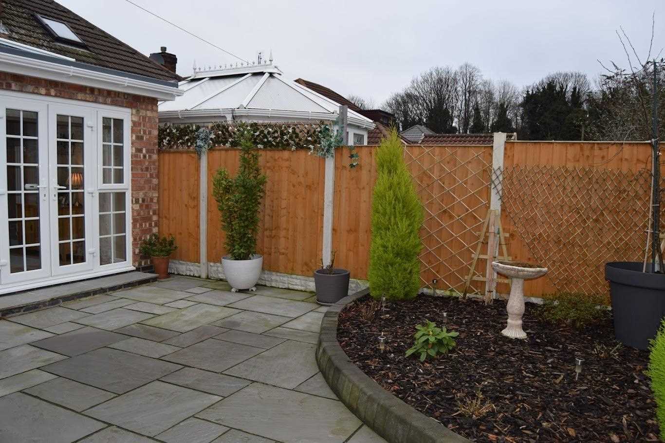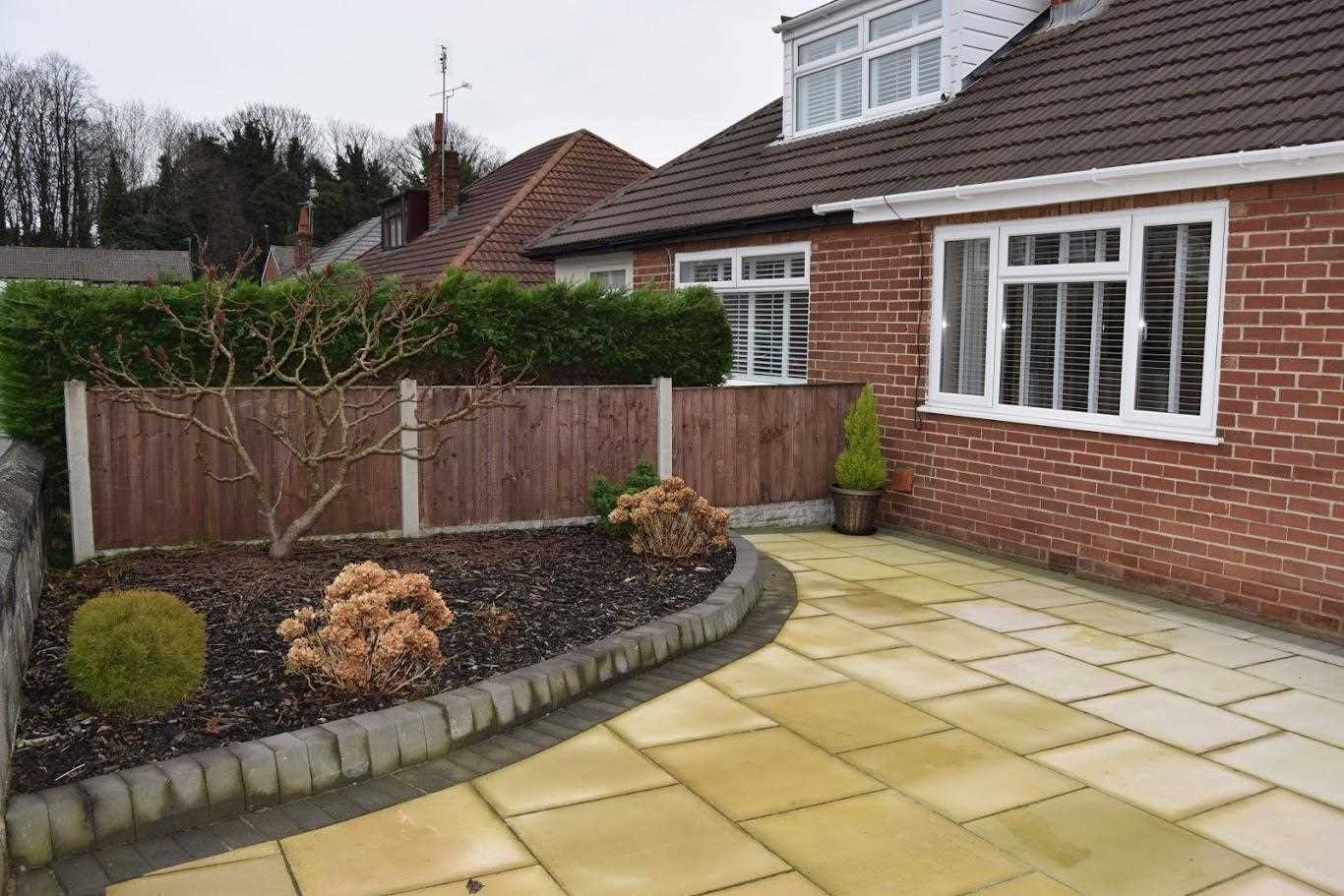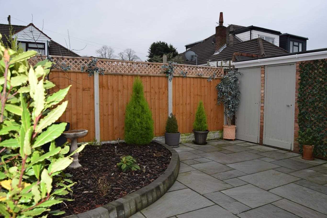 A landscaped south facing garden. Indian flags with planting area to the rear of garden. Side garage suitable for car or additional storage space. Ideal space for summer months. Maintenance free and immaculate condition. To the front of the house the garden is part paved with a small corner border. This space is ideal for additional car spaces.