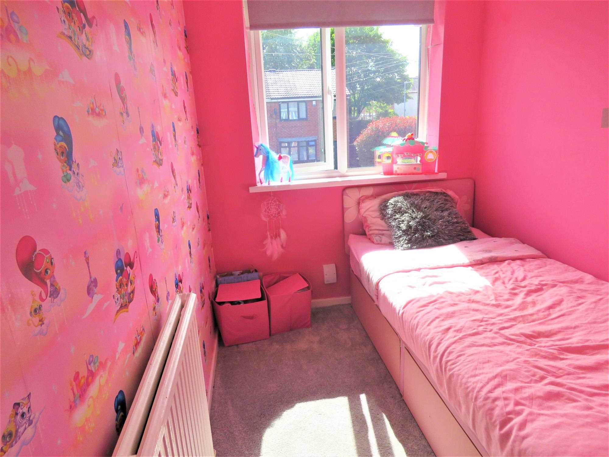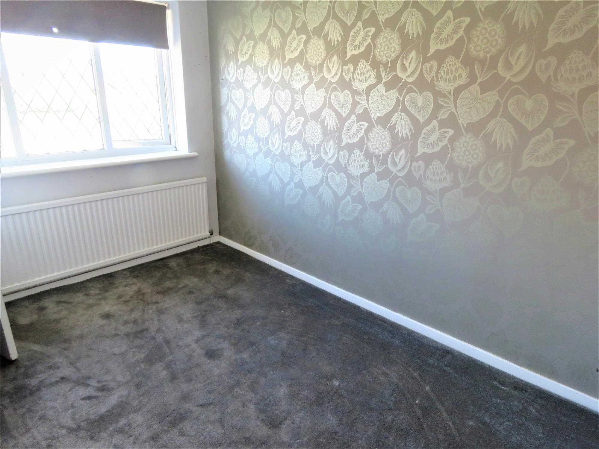 A good sized single bedroom. Grey carpets. Wallpapered and painted walls. Front elevation of the property. Upvc double glazed windows. Double radiator. Bayonet light fitting.